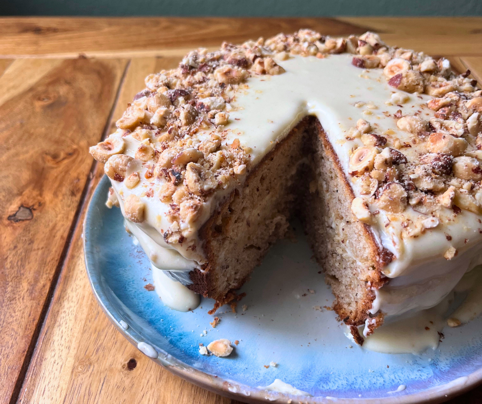 Ein Nusskuchen mit Chai-Gewürzen und einem Chai-Frosting