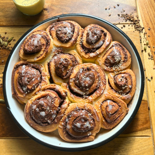 Die kalte Jahreszeit lädt dazu ein, die Küche in eine kleine Backstube zu verwandeln und neues auszuprobieren – und genau dafür sind diese Schoko-Orangen-Tahin-Schnecken wie geschaffen! Inspiriert von klassischen Zimtschnecken, bringen sie durch die Kombination von dunkler Schokolade, frischer Orange und dem nussig-herben Geschmack von Sesampaste (Tahin) eine besondere, nahöstliche Note auf den Tisch. Die Tahin-Füllung sorgt dabei für eine leicht nussige Tiefe, die sich perfekt mit der Zitrusfrische der Orange und der samtigen Schokolade verbindet. Diese Schnecken sind weich, aromatisch und wärmen von innen – ideal für gemütliche Nachmittage, an denen man sich mit einer Tasse Tee und einem Hauch von Orient verwöhnen möchte. Ob als Highlight auf der winterlichen Kaffeetafel oder als köstliches Geschenk aus der Küche: Diese Schnecken bringen eine besondere Note in die kalte Jahreszeit!