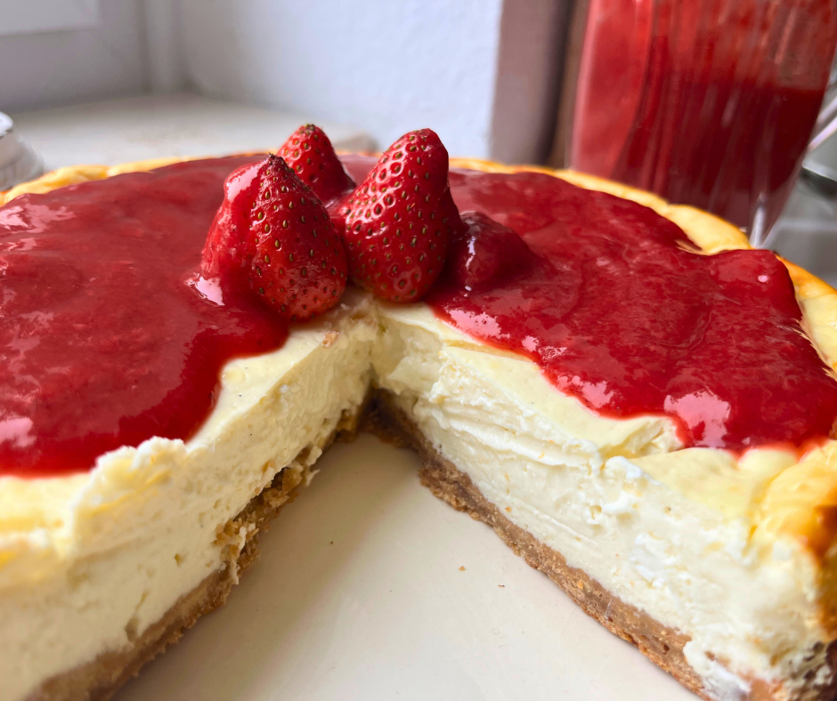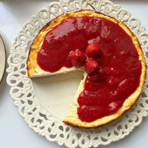 Cheesecake ist einer meiner absoluten Lieblingskuchen. Deshalb habe ich länger an einer zuckerfreien, gesünderen High-Protein-Variante getüftelt – und bin jetzt richtig happy mit dem Ergebnis. Er ist wunderbar cremig und kommt ganz ohne Zucker aus. Die natürliche Süße ist angenehm dezent, und die Erdbeersauce bringt eine frische, fruchtige Note ins Spiel. Kein schwerer Kuchen, sondern perfekt für zwischendurch, als leichtes Dessert oder sogar als etwas bewussteres Frühstück.